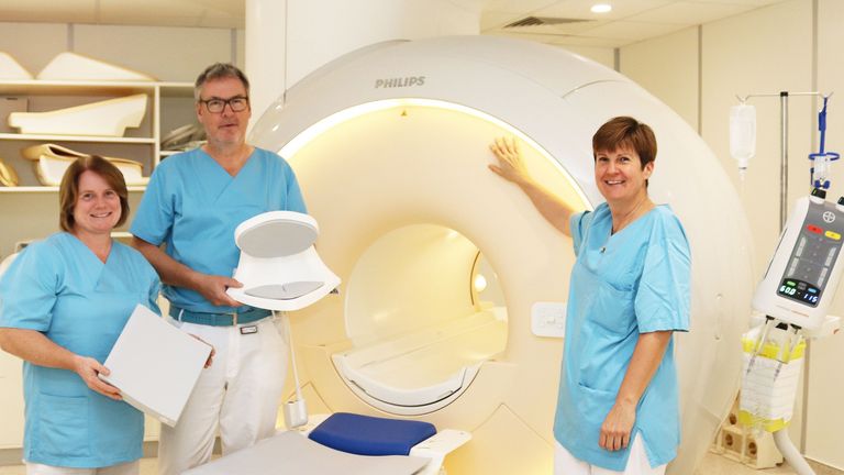 Das Albertinen Krankenhaus hat zu diesem Zweck nun eine ganz besondere Schulterspule anschaffen können, dank der Unterstützung einer großzügigen Förderstiftung. Diese Spule ist beidseitig einsetzbar und kann individuell angepasst werden. Für Patientinnen und Patienten bedeutet das größeren Komfort – gerade, wenn jede Bewegung schmerzt, ist es eine willkommene Erleichterung, ruhig liegen bleiben zu dürfen. Außerdem wird die Schulter mit der Spule höchst präzise dargestellt. Sollten im Rahmen der Diagnostik also Verletzungen sichtbar werden, kann das OP-Team den nötigen Eingriff besser planen, und Folgeeingriffe entfallen. Auch das ist für die Betroffenen sehr vorteilhaft.