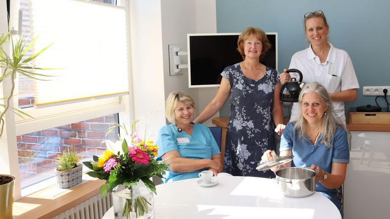 Dank Spenden ist der gemütliche Aufenthaltsraum der Palliativstation im Albertinen Krankenhaus ein würdiger Ersatz für die eigenen vier Wände von Sterbenskranken. Ein neues Topfset und ein Teekocher ermöglichen es nun zum Beispiel Angehörigen, die liebsten Leckereien der Patientinnen und Patienten zuzubereiten. Frische Pflanzen sorgen für ein angenehmes Raumklima. Ein neues Fernsehgerät, sicher an der Wand befestigt, lädt dazu ein, sich von Zeit zu Zeit von Krankheitssorgen abzulenken. So können Angehörige, aber auch Patientinnen und Patienten, für einen Moment vergessen, dass sie nicht im vertrauten Zuhause, sondern im Krankenhaus sind.