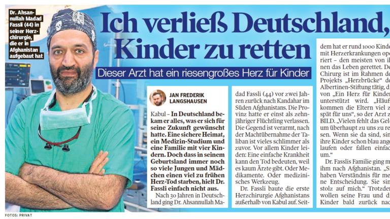 Das finden wir auch und erfreuen uns an dem freundlichen Artikel über Dr. Ahsannullah Madad Fassli, unseren Herzbrücke-Chirurgen in Kandahar, auf www.bild.de und der Veröffentlichung in der Printausgabe der Bildzeitung am 11. Februar 2025.
