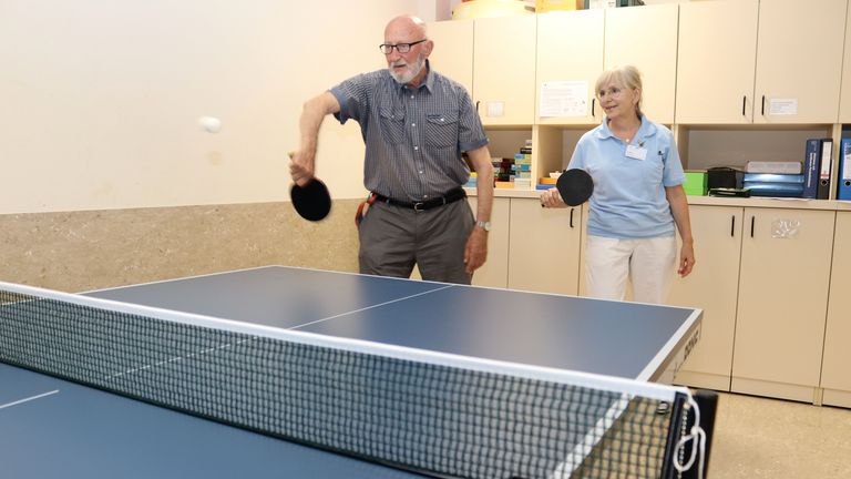 Im Albertinen Haus ist Tischtennis daher seit Juni 2024 Teil des ergotherapeutischen Angebots. Auf Anregung von Ergotherapeutin Elisabeth Girsig und dank einer großzügigen Spende steht dort nun eine Platte samt Zubehör bereit, insbesondere für Menschen mit Demenz, aber auch bei anderen Krankheitsbildern. Schon die ersten Erfahrungen sind positiv: „Mein Mann ist nach dem Spielen immer geistig ganz klar“, berichtet beispielsweise eine Bewohnerin des Albertinen Hauses, deren Mann seit Jahren mit einer Demenz lebt.