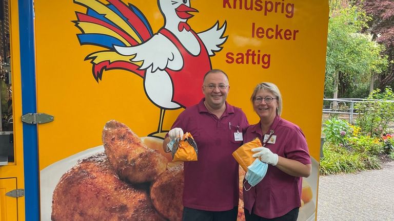Die Albertinen-Stiftung hat deshalb auch 2022 wieder ein schmackhaftes Dankeschön für die Kolleginnen und Kollegen organisiert: Anfang September gab es Hendl und Falafel für die Mitarbeitenden. Fast 1.600 halbe Hähnchen und Kichererbsenbällchen gingen über den Tresen der GaumenSchmaus-Wagen, die am Albertinen Krankenhaus, am Albertinen Haus sowie am Ev. Amalie Sieveking Krankenhaus aufgestellt waren.