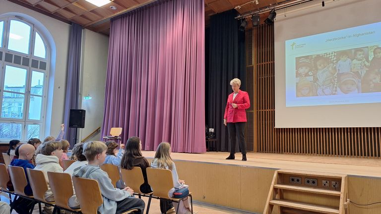 Im Mittelpunkt stand die Arbeit der Herzbrücke. Die Fünftklässlerinnen und -klässler stellten zahlreiche interessierte Fragen und erfuhren, wie es Kindern in Afghanistan geht, die an schweren Herzkrankheiten leiden und in deren Heimat eine medizinische Versorgung keine Selbstverständlichkeit ist – und wie die Herzbrücke diesen Kindern Unterstützung bietet. Denn so konnten allein im Jahr 2025 dank der Herzbrücke 120 Kinder in Kabul und Kandahar operiert werden und in ein gesundes Leben ohne körperliche Beeinträchtigung starten.