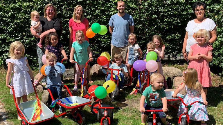 Über tolle neue Spielfahrzeuge durften sich im Juni die Kinder in der Albertinen Kindertagesstätte Volksdorf freuen: Roller und Räder, Bobbycars und Schubkarren wurden gleich fleißig getestet, kaum dass das Kita-Team um Leiterin Marina Gade-Wohltorf die kleinen Flitzer in Empfang genommen hatte. Finanziert wurden die Fahrzeuge über die Albertinen-Stiftung, unterstützt durch Kita-Eltern, die in Corona-Zeiten auf die Rückerstattung ihrer Elternbeiträge verzichtet und das Geld stattdessen an die Albertinen-Stiftung gespendet hatten.