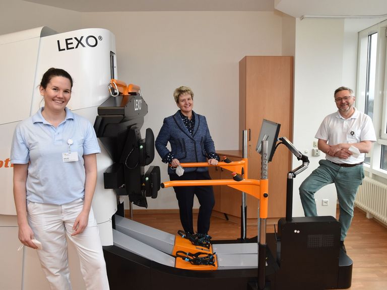 Ein computergestützter Gangtrainer erleichtert dank Spenden Schlaganfall- und Covid-Patienten das Wiedergehenlernen.