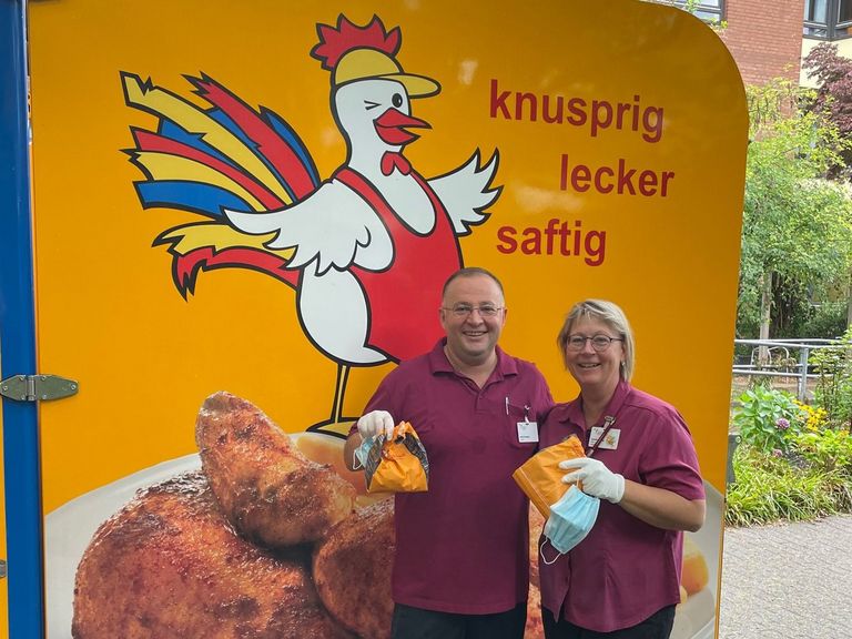 Die Albertinen-Stiftung dankte Kolleginnen und Kollegen mit Hendl und Falafel für ihren großen Einsatz in Pandemiezeiten.